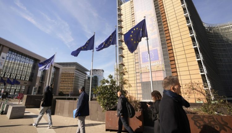Люди проходят мимо штаб-квартиры ЕС в Брюсселе. Архивное фото