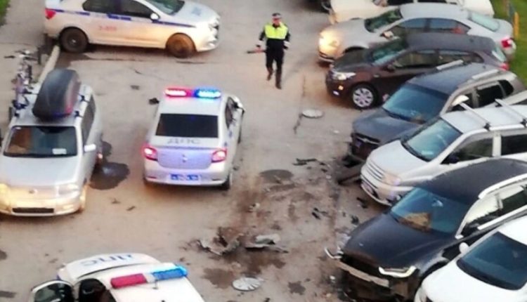 По информации kp.ru, повреждения получили три полицейские машины и восемь автомобилей жителей ближайших многоэтажек.